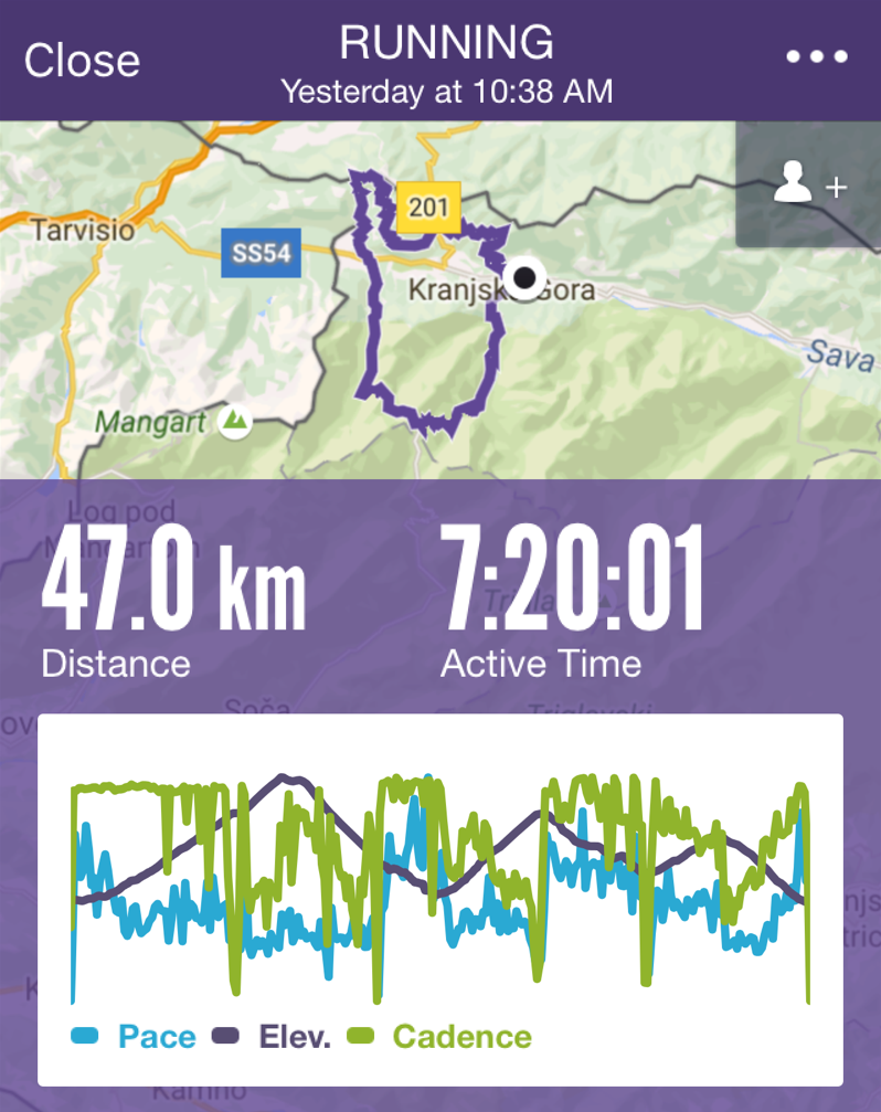 Tekla sva 47km, 2100m višinske razlike, 7 ur in 20 minut.